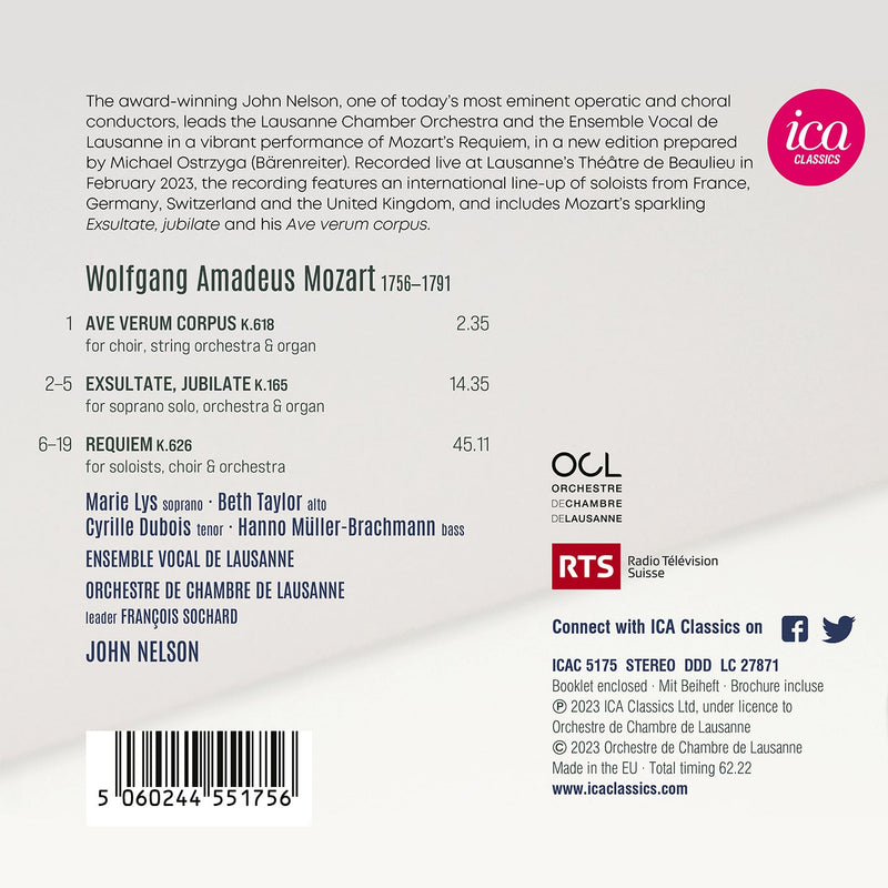ICA ClassicsMozart: Requiem / Nelson, Lausanne Chamber Orchestra