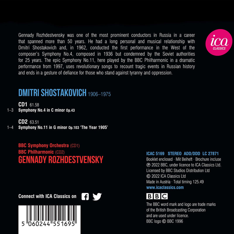 ICA ClassicsShostakovich: Symphonies Nos. 4 & 11 / Rozhdestvensky, Orchestras of the BBC