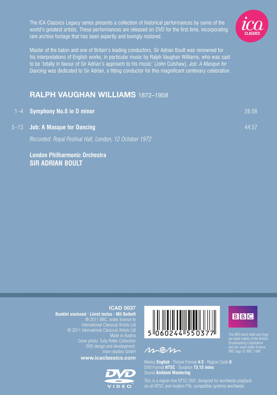 VAUGHAN WILLIAMS Symphony No. 8. Job • Adrian Boult, cond; London PO • ICA ICAD 5037 (DVD: 73:05) Live: London 12/10/1972 To...