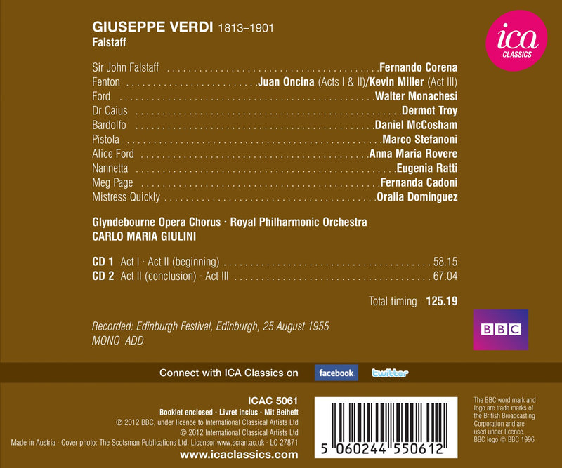 ICA ClassicsVerdi: Falstaff / Corena, Oncina, Miller, Giulini, Royal Philharmonic Orchestra