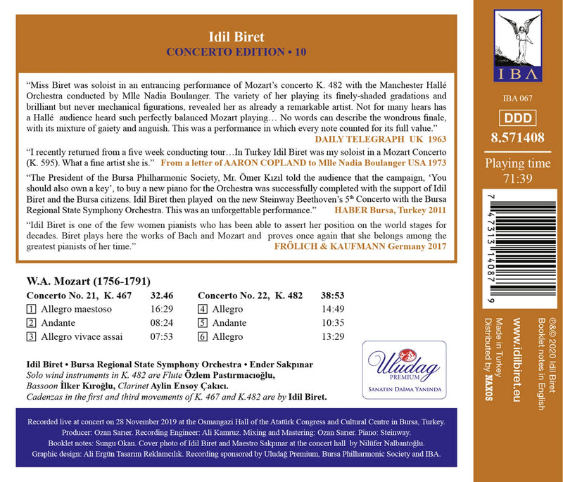 On this release, the tenth volume in the Idil Biret Concerto Edition, Idil Biret performs W.A. Mozart’s Piano Concertos Nos. 21 and...