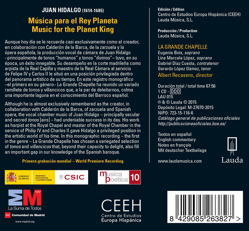 LaudaMUSIC FOR PLANET KINGAlthough he is primarily remembered as the creator of zarzuela and Spanish opera, the sacred and secular vocal chamber music of Baroque...