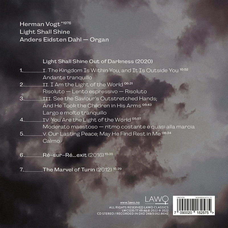 On the album “Light Shall Shine” organist Anders Eidsten Dahl performs three works of Herman Vogt on the magnificent Carsten Lund organ...