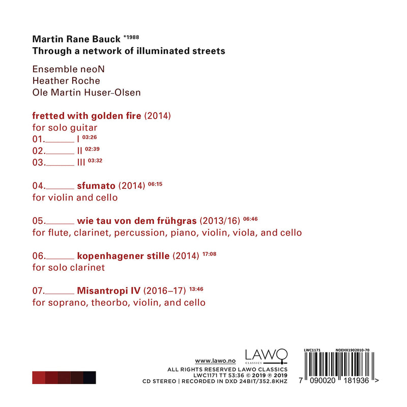 LAWO ClassicsBauck: Through a network of illuminated streetsThrough a network of illuminated streets brings together the best chamber music from Martin Rane Bauck's classical middle period (2013-17) points towards...