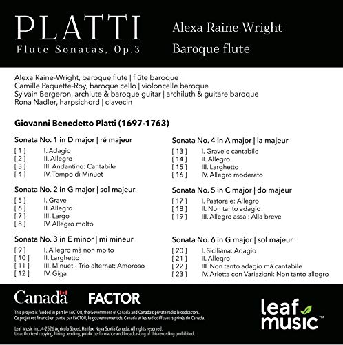On SaleLeaf MusicPlatti: Flute Sonatas, Op. 3Known for her spirited and luminous sound, Baroque flute player Alexa Raine-Wright shares her eloquent interpretations with audiences across North America in...