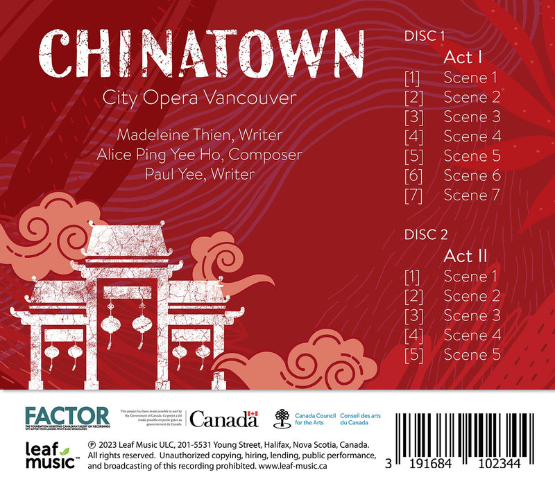 On SaleLeaf MusicAlice Ping Yee Ho: Chinatown - A New Opera / City Opera VancouverAlice Ping Yee Ho, City Opera Vancouver, and Leaf Music are proud to present Chinatown, a sweeping opera that tells the collective...
