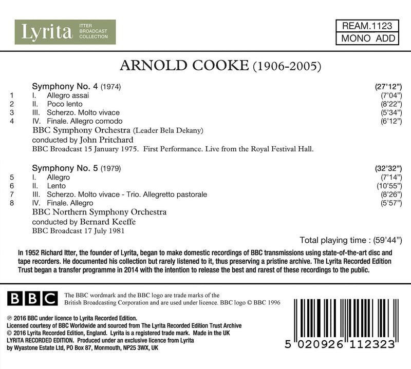 This album of Arnold Cooke’s Symphonies 4 and 5 were originally broadcast on the BBC in 1975 and 1981, respectively. Arnold Cooke...