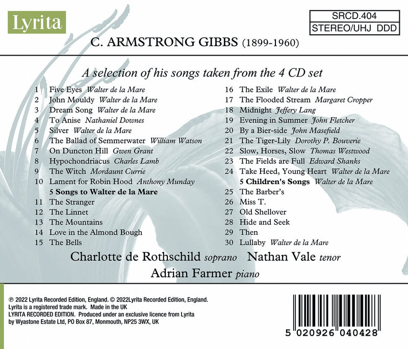 The present release features a selection of Cecil Armstrong Gibbs' songs taken from the 4-album set also released by Lyrita. Cecil Armstrong...