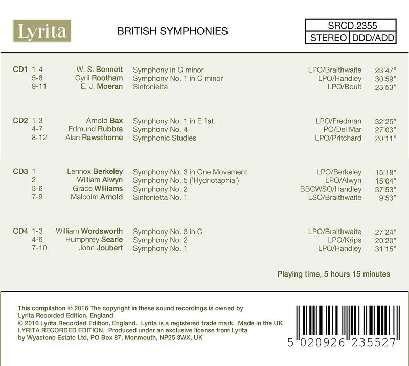 For this monumental four-disc release, Lyrita has chosen the most influential and best loved symphonies by British composers, taken from previous Lyrita...