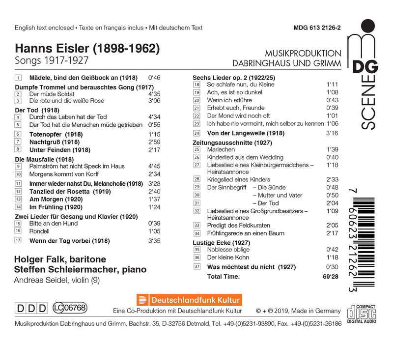 Hanns�Eisler composed more than five hundred songs, and his very first extant compositions include songs with piano accompaniment. On the fourth and...