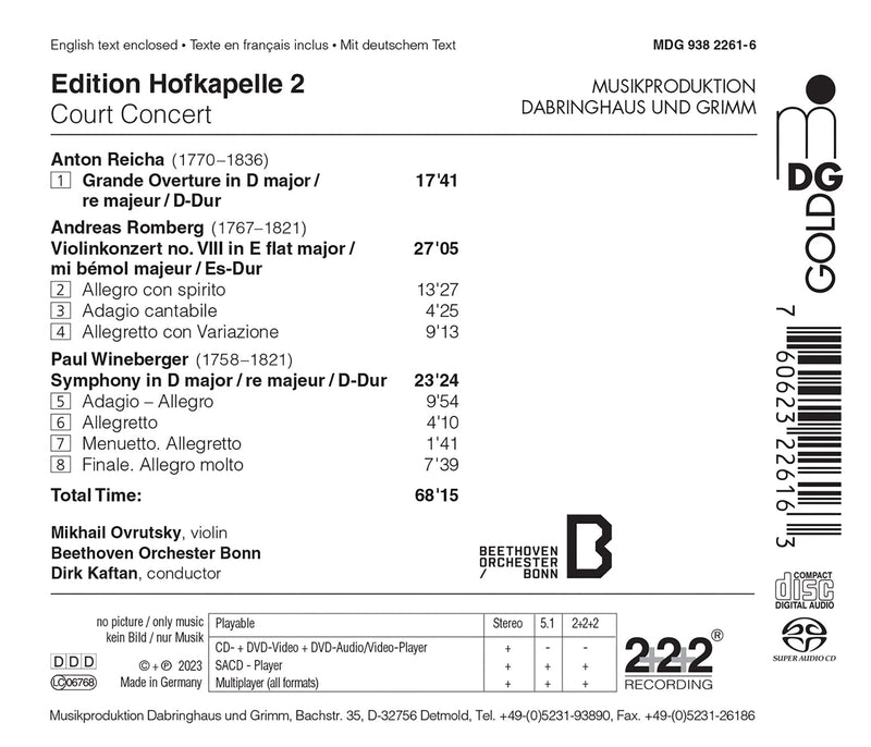 MDGReicha, Romberg et al: Edition Hofkapelle, Vol. 2 / Kaftan, Beethoven Orchestra Bonn