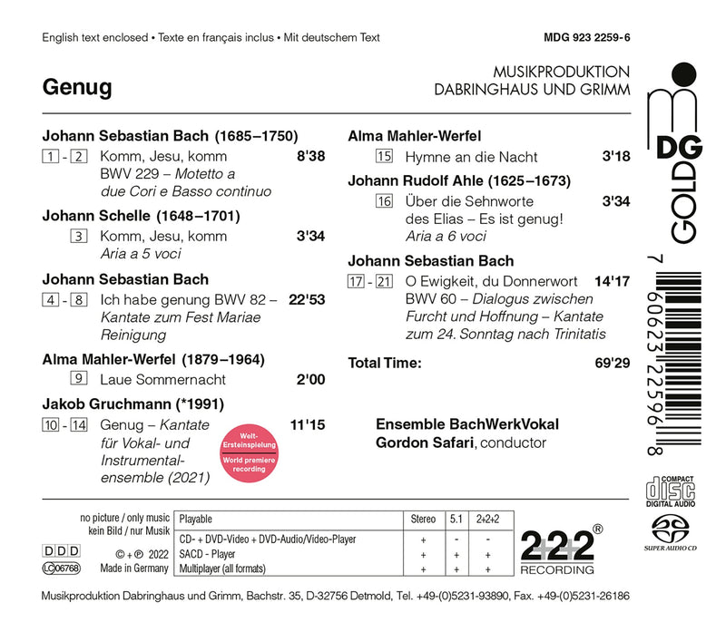 MDGAhle, Bach, A. Mahler et al: Genug [Enough] / Safari, Ensemble BachWerkVokal