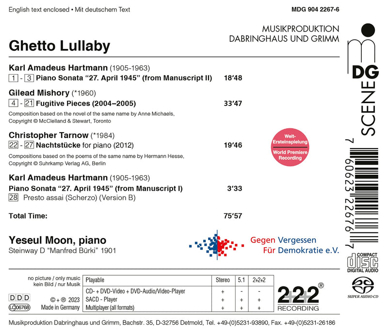 In this poignant WORLD PREMIERE RECORDING, Yeseul Moon explores three very different artistic approaches to the horrors of the holocaust from several...