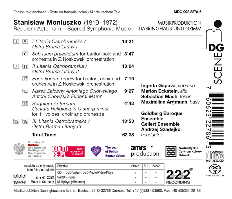MDGMoniuszko: Requiem Aeternam / Szadejko, Goldberg Baroque Ensemble
