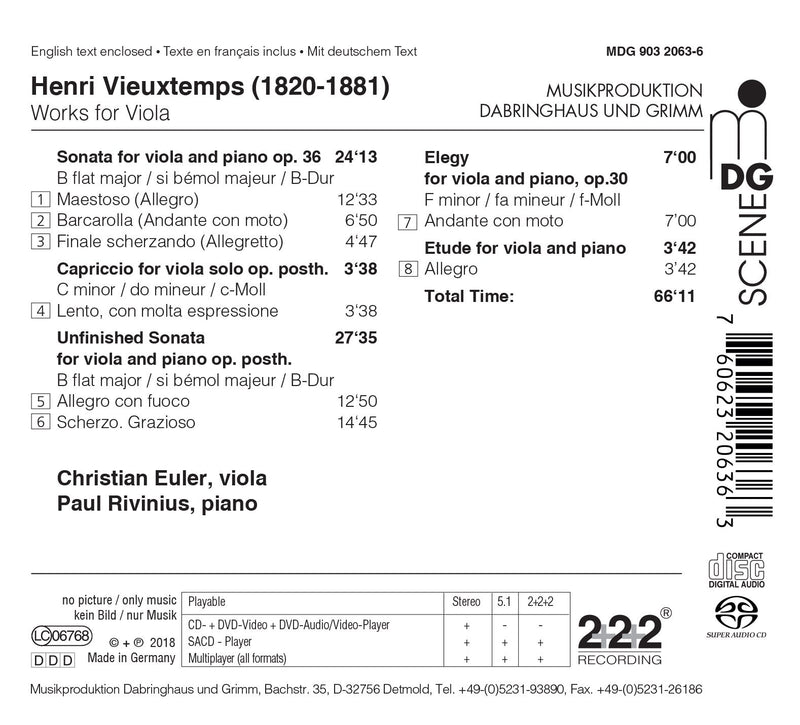 MDGVieuxtemps: Works for Viola & Piano / Euler, Rivinius