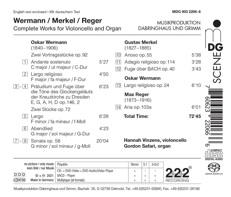 MDGMerkel, Wermann, Reger: Complete Works for Cello & Organ / Vinzens, Safari