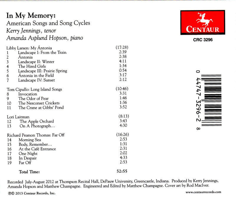 Centaur RecordsIn My Memory: American Songs and Song Cycles