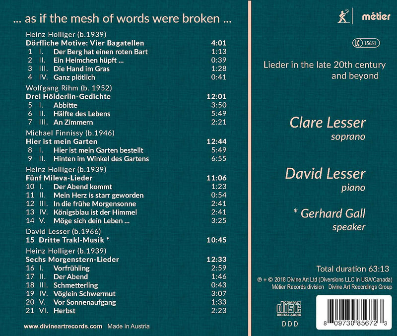 Metier...As If the Mesh of Words Were Broken...: Lieder in the Lat