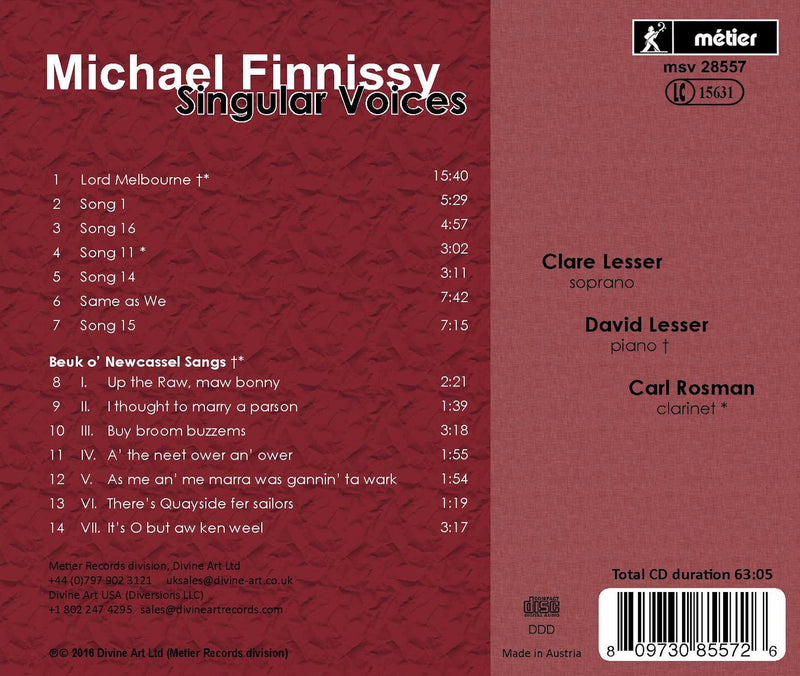 MetierFinnissy: Singular Voices / Lesser, Rosman