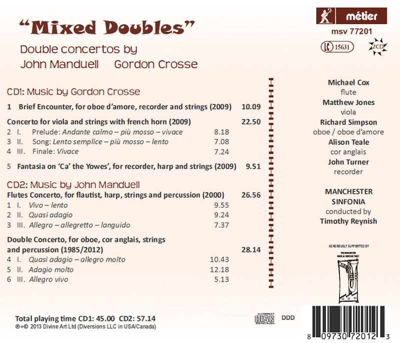 This set presents the premiere recordings of double concertos by two senior and much respected English composers. Sir John Manduell contributes two...