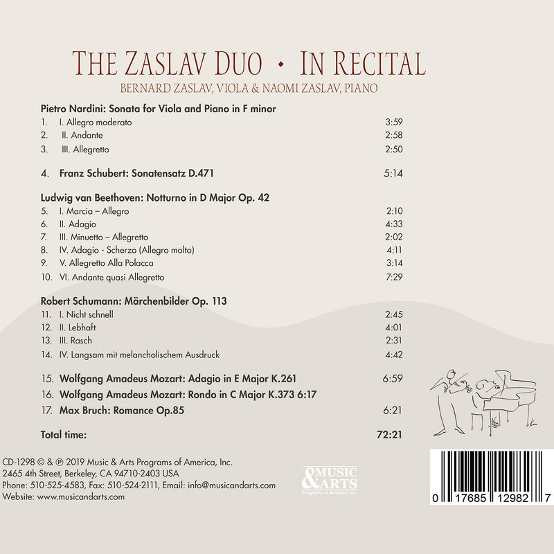 Since their Carnegie Recital Hall debut in 1962, the Zaslav Duo (Bernard Zaslav, viola and Naomi Zaslav, piano) attained a high level...