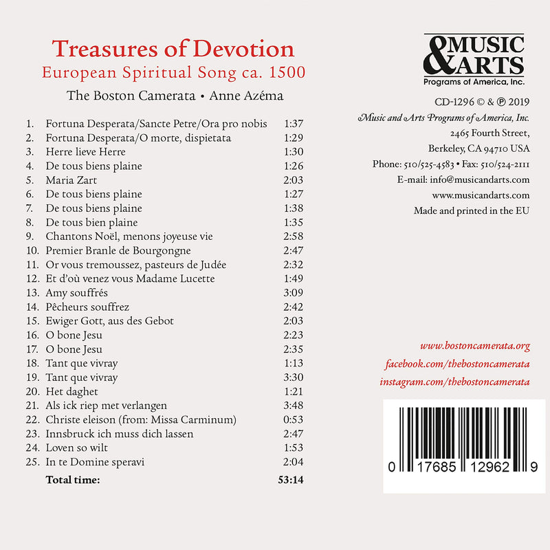 Music and Arts Programs of AmericaTreasures of Devotion: European Spiritual Song ca. 1500 / Azema, Boston Camerata