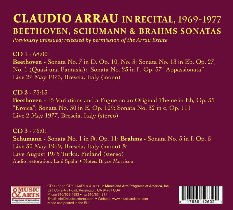 There have been few pianists of Arrau's range and stature, and these invaluable live recordings can only reaffirm memories of another time,...