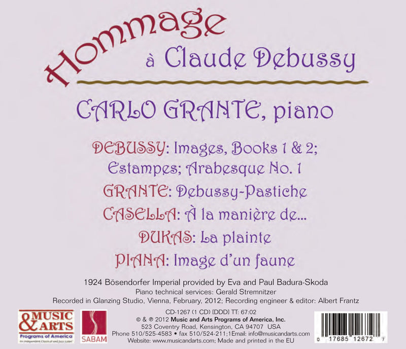 An audiophile recording of some of Debussy's favorite piano pieces plus rare and unusual works by admirers of his musical idiom. Grante...