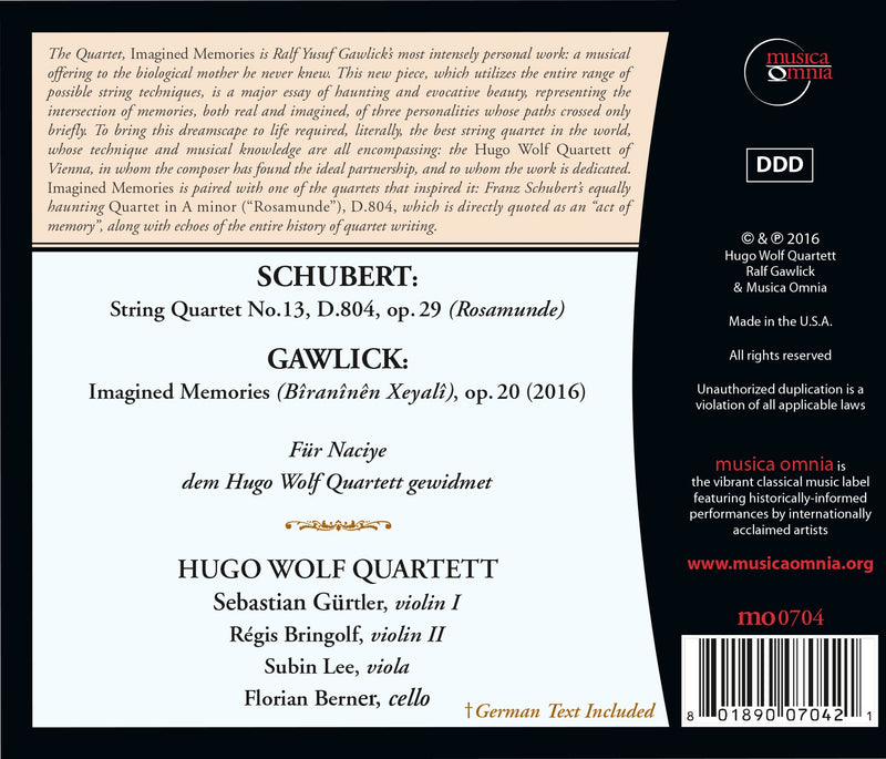 Musica OmniaImagined MemoriesThis new release is Musica Omnia’s debut of the Hugo Wolf Quartett from Vienna, Europe’s leading younger-generation string quartet, specialists in both...