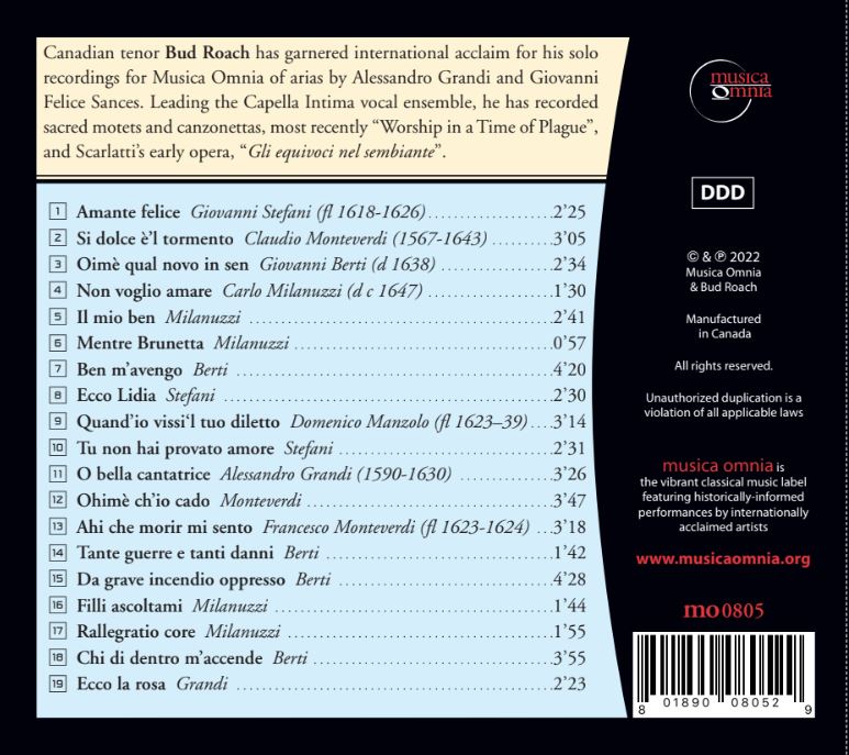 Musica OmniaMonteverdi et al: Affetti Amorosi - Songs for Voice & Theorbo / RoachSacred motets for 1-6 voices published in Venice before, during, and after the plague of 1630, featuring Capella Intima and the Gallery...
