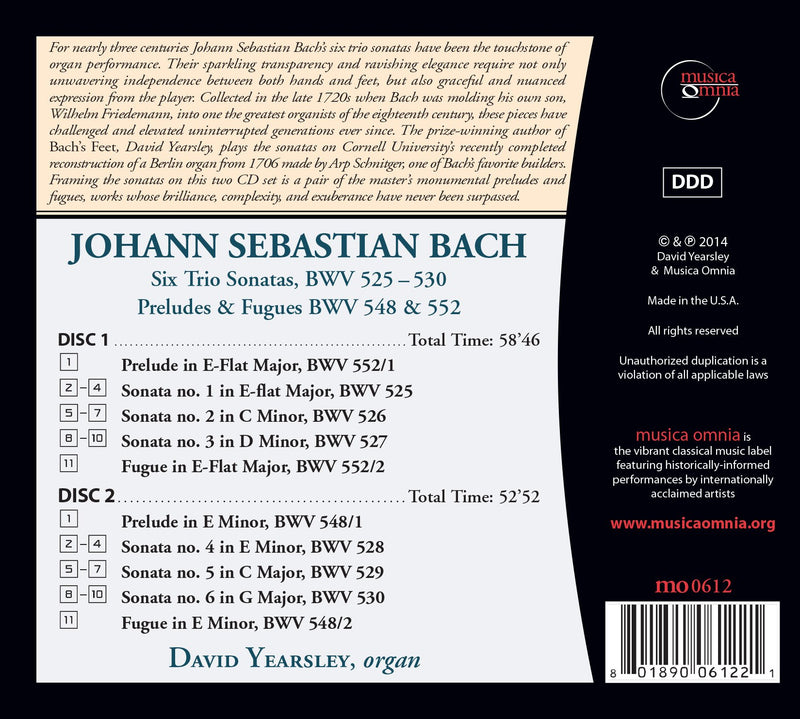 Musica OmniaJ.S. Bach: Works for OrganJ.S. Bach's six trio sonatas have been the touchstone of organ performance for 300 years. Collected in the late 1720's when Bach...