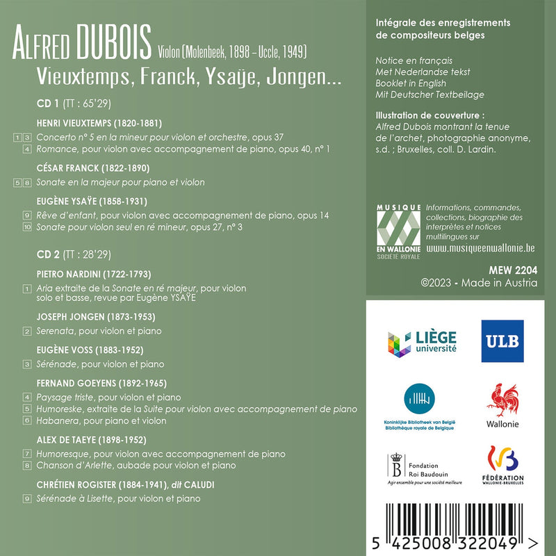 Musique en WallonieAlfred Dubois - ViolonThe “Historiques” collection of Musique en Wallonie honors the Verviers violinist Alfred Dubois. As a soloist Dubois performed under prestigious conductors such...