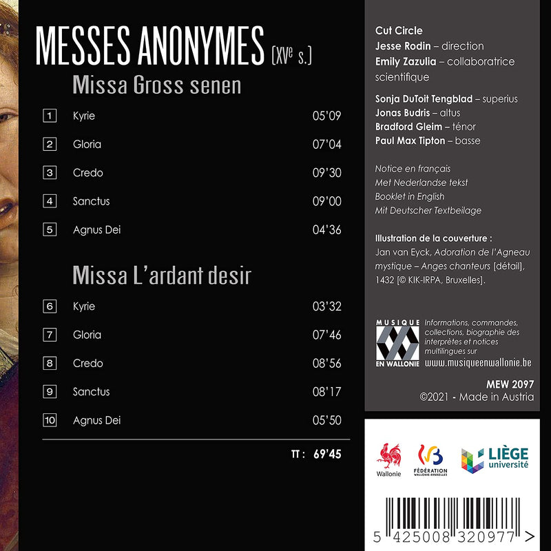 Musique en WallonieMesses anonymes: Missa Gross senen - Missa L'ardant desir / Rodin, Cut CircleWhat makes a piece of music difficult? This album introduces a pair of riveting, technically ambitious, historically important, and never-before-recorded polyphonic masses...