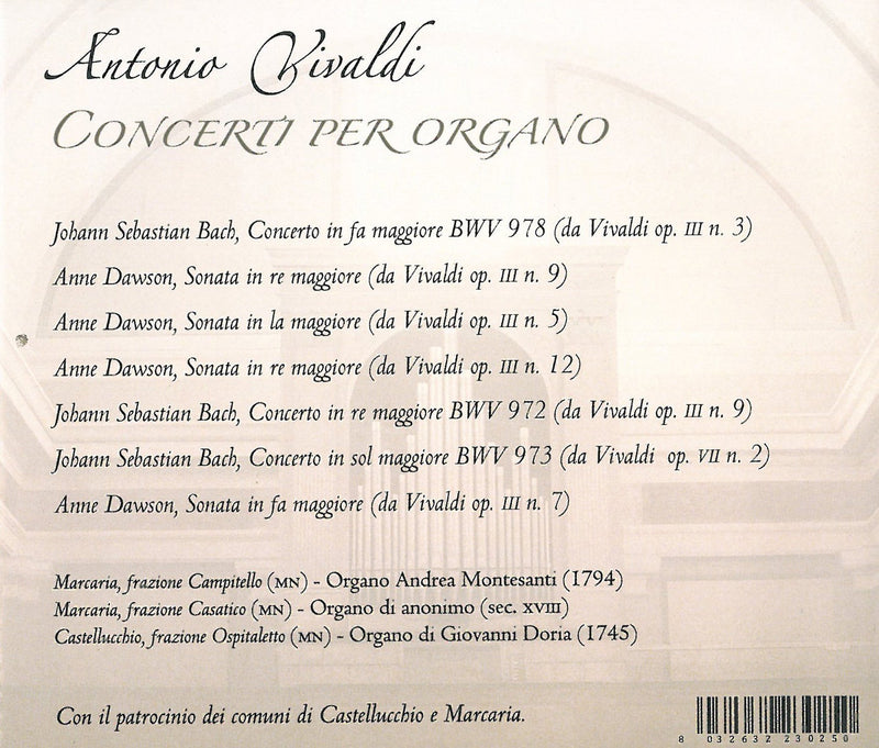 MV CremonaVivaldi: Concerti per organoThe organ and other keyboard instruments were always considered harmonic support in the Baroque period. They constituted a constant presence in the...