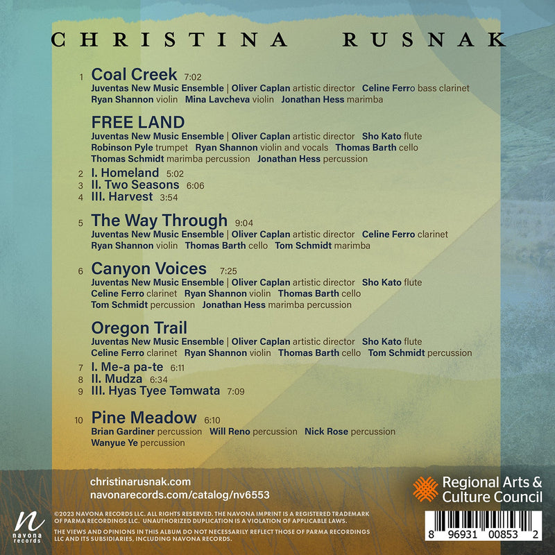 VOICES OF THE LAND from composer Christina Rusnak guides listeners on a journey through America; celebrating its landscape and its people. The...