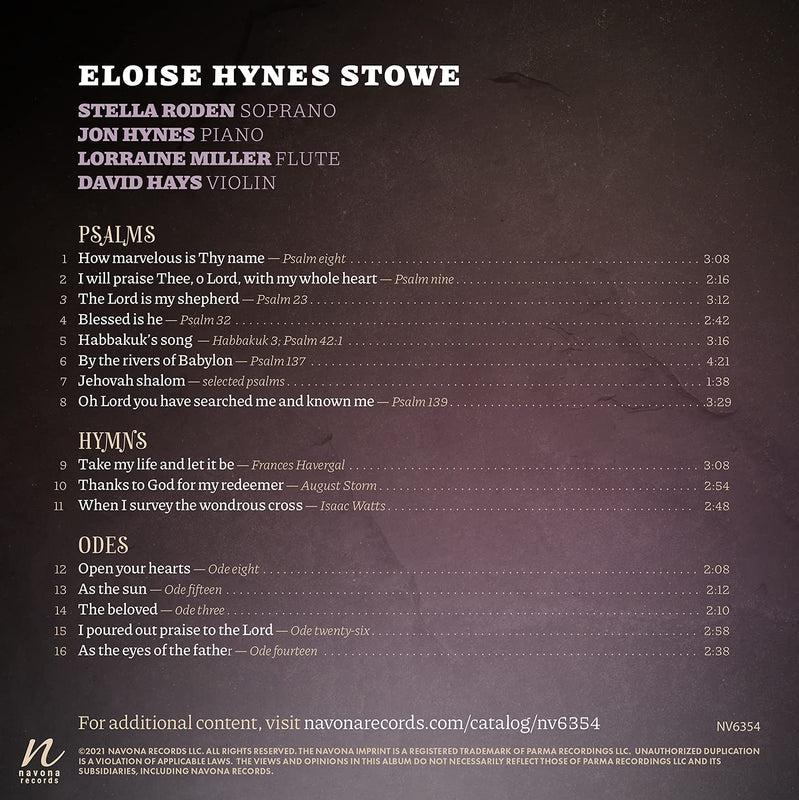 One does not have to be religious to appreciate the depth, inspiration, and melodiousness of PSALMS, Eloise Hynes Stowe's new album from...
