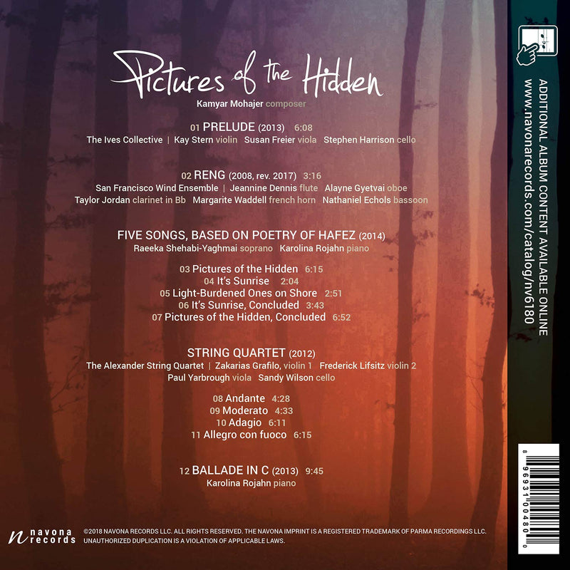 Kamyar Mohajer’s Pictures of the Hidden honors the composer’s “four Grand Masters:" Johann Sebastian Bach, Persian poet Hafez, and his parents. In...