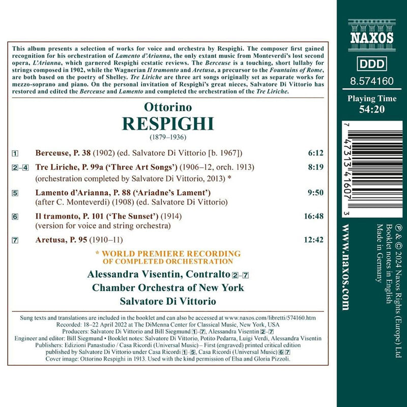 At the invitation of Respighi’s great nieces, conductor Salvatore Di Vittorio has restored and edited the Berceuse and Lamento d’Arianna. His completion...
