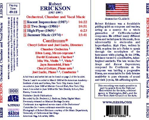 Robert Erickson was a formidable guiding spirit as composer and teacher, acting as a mentor for a whole generation of California-trained composers....