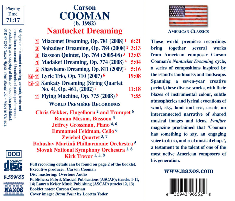 NaxosNantucket Dreaming / Nobadeer Dreaming / Bassoon Quintet / Madaket Dreaming / Shawkemo Dreaming / Lyric Trio / Sankaty Dreaming (String Quartet No. 4) / Flying Machine