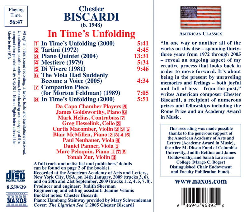 NaxosIn Time's Unfolding / Tartini / Piano Quintet / Mestiere / Di vivere / The Viola Had Suddenly Become a Voice / Companion Piece