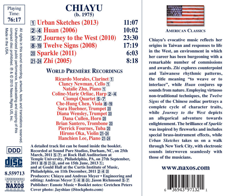 Chiayu's evocative music reflects her origins in Taiwan and responses to life in the West. Zhi explores counterpoint and Taiwanese rhythmic patterns,...
