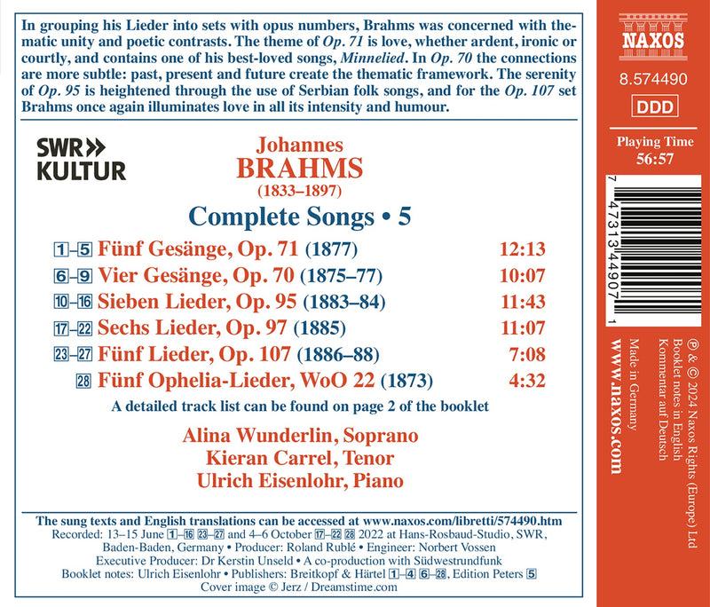 NaxosBrahms: Complete Songs, Vol. 5 / Wunderlin, Carrel, Eisenlohr