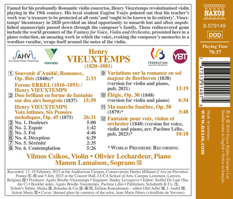 NaxosVieuxtemps: Voix intimes - Rarities for Violin & Piano / Csikos, Lechardeur