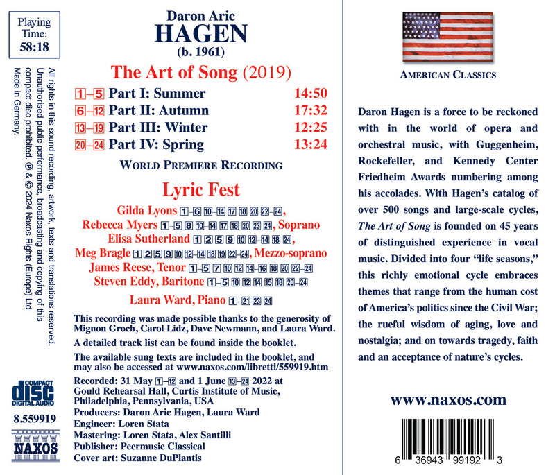 Daron Hagen is widely acclaimed as one of the most performed American composers today. The Art of Song draws on a wide...