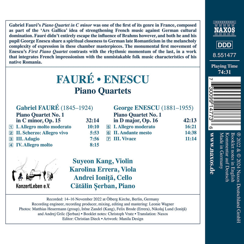 NaxosMélodies Infinies - Enescu & Fauré: Piano Quartets / Kang, Errera, Ioniță, Șerban
