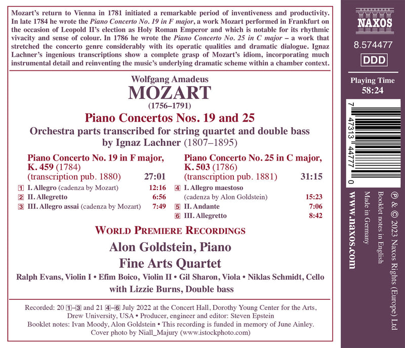 NaxosMozart: Piano Concertos Nos. 19 & 25 / Goldstein, Fine Arts Quartet