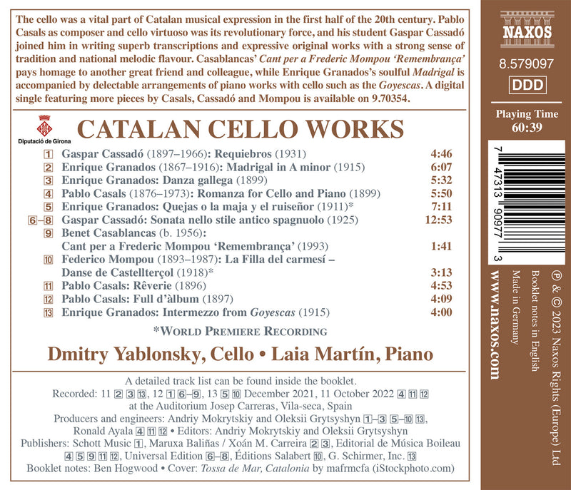 The cello was a vital part of Catalan musical expression in the first half of the 20th century. Pablo Casals as composer...