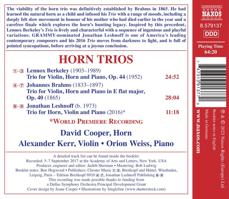 NaxosBerkeley, Brahms & Leshnoff: Horn Trios / Cooper, Kerr, Weiss
