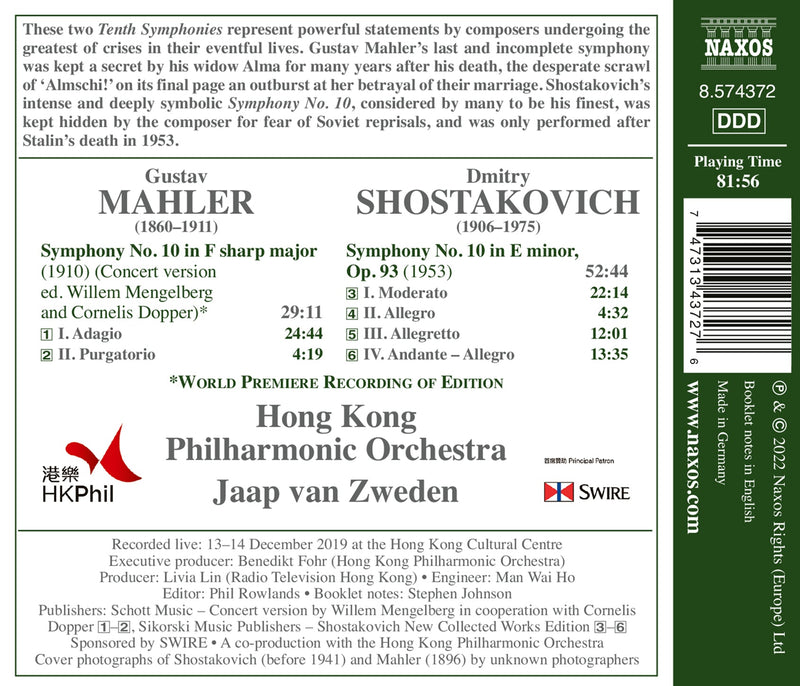 NaxosShostakovich: Symphony No. 10 - Mahler: Symphony No. 10 (Adagio & Purgatorio) / Zweden, Hong Kong Philharmonic